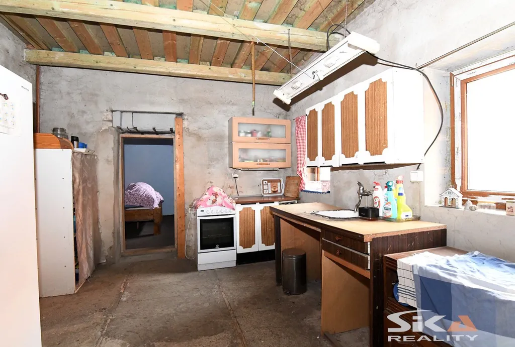 Nabízíme Vám k prodeji rodinný dům s vedlejšími stavbami a zahradou v obci Volenice. Nemovitost se nachází na pozemku o celkové výměře 742 m² a je vhodná jak k trvalému bydlení, tak i k celoročnímu rekreačnímu využití. Přízemní rodinný dům je postaven ze smíšeného zdiva, má sedlovou střechu a dispozičně nabízí obytnou část 3+1 s příslušenstvím o výměře cca 85 m². Na objektu byla započata dílčí rekonstrukce, která však nebyla dokončena, což dává novému majiteli možnost dokončení dle vlastních představ. V současné době má dům do dvorní části nová plastová okna a střešní okna, jsou zde osazeny deskové radiátory s novými rozvody v mědi, dále částečně nové betonové podlahy, částečně nové rozvody elektroinstalace a rozvody vody a odpadů. Dům je napojen na veřejný vodovod a elektrickou energii, odpady jsou svedeny do jímky. Vytápění je zajištěno kotlem na tuhá paliva, umístěným v samostatné stavbě kotelny. Na pozemku se dále nachází stodola využívaná jako dílna, vedlejší stavba kotelny, dřevěná pergola pro letní posezení a samostatná stavba původní letní kuchyně, ve které je v současné době funkční koupelna.