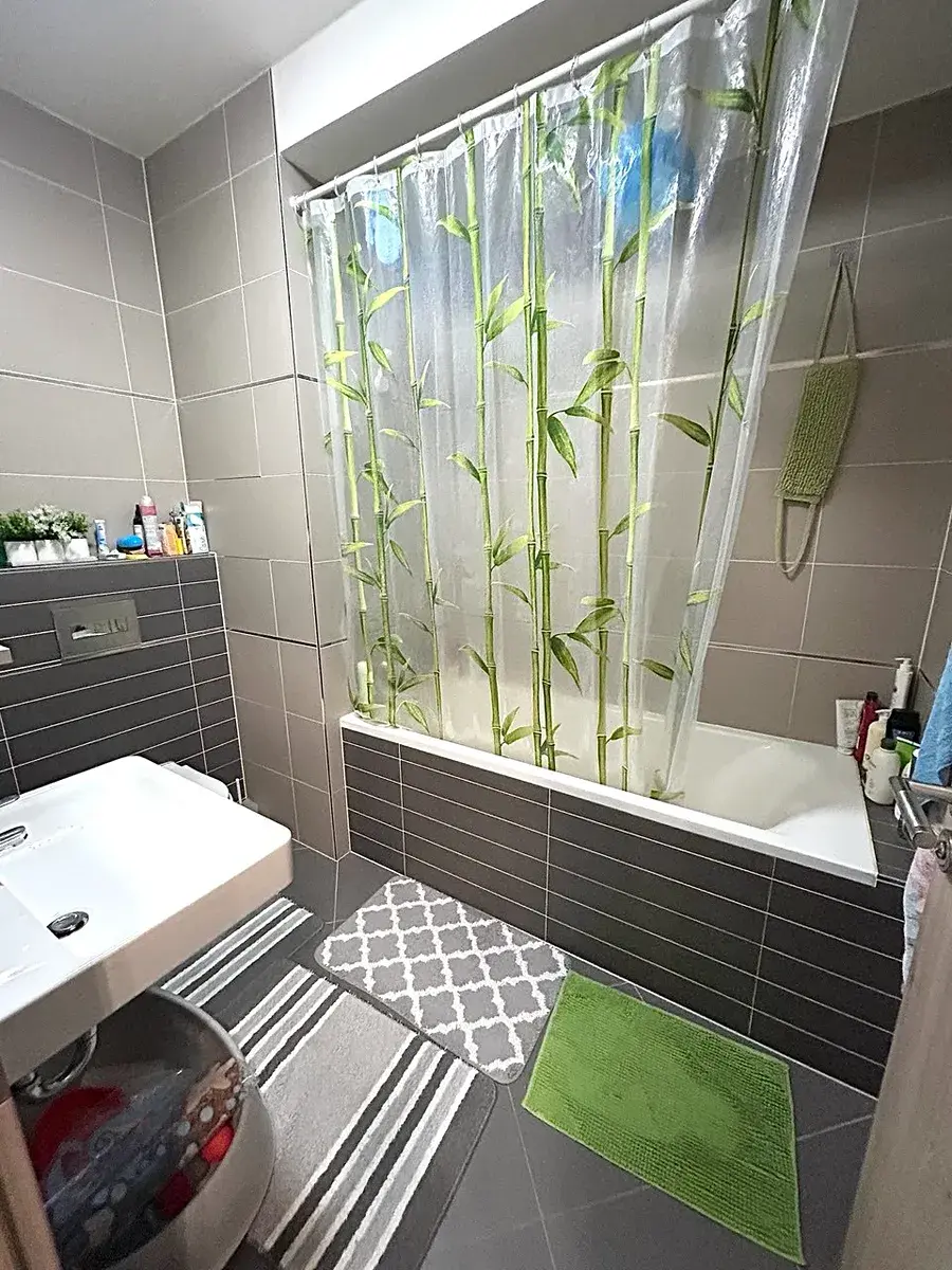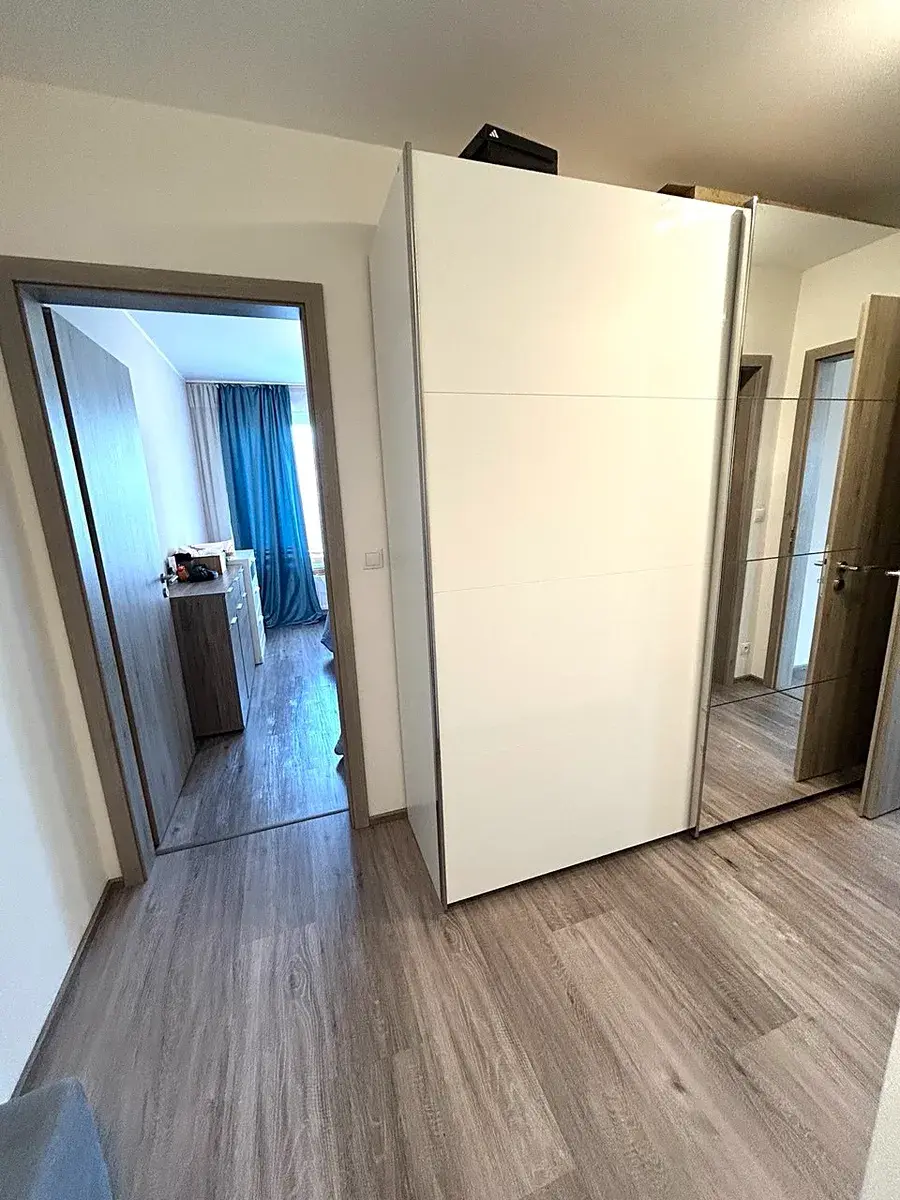 Byt se skládá z předsíně, komory, obývacího pokoje s kuchyňskou linkou, lodžie, ložnice, koupelny s vanou a toaletou.