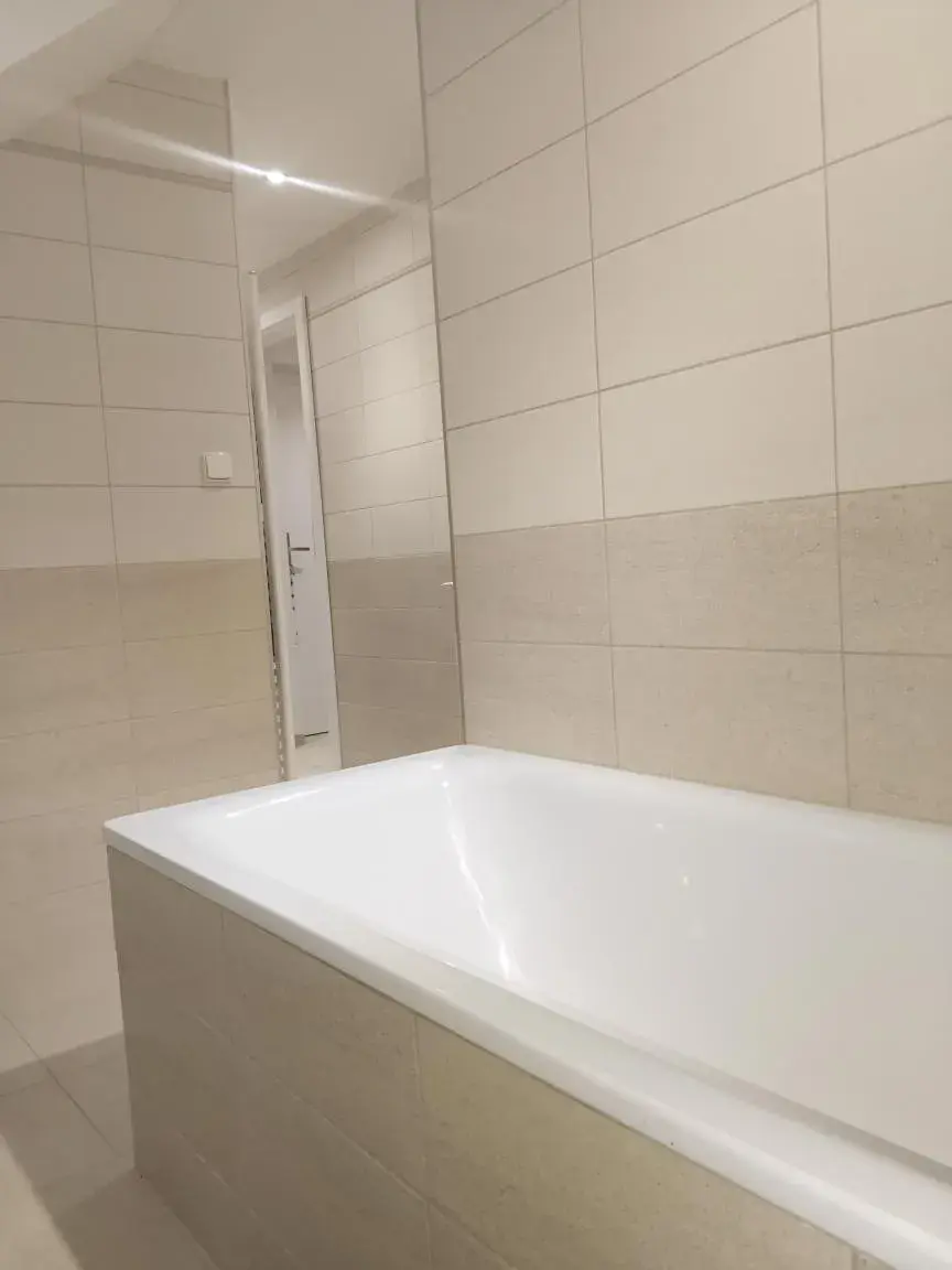 V koupelně je k dispozici vana, umyvadlo, toaleta, připojení na pračku.