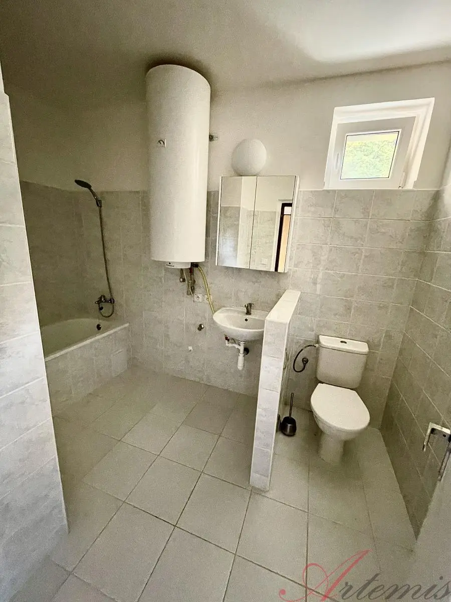 Zrekonstruovaný slunný byt, situovaný na dvě světové strany - jih/západ, disponuje dvěma prostornými pokoji. Jeden je spojen s kuchyňským koutem, ve kterém je kuchyňská linka s elektrickým sporákem. Dále je zde velkorysá koupelna spojená s WC. Podlahové krytiny tvoří plovoucí podlahy, v sociálním zařízení je dlažba. Topení zajišťuje centrální plynový kotel, ohřev vody poté elektrický bojler. Voda je z vlastních zdrojů - studna, vlastní vrt.