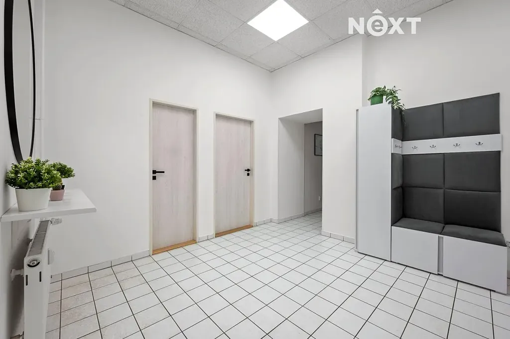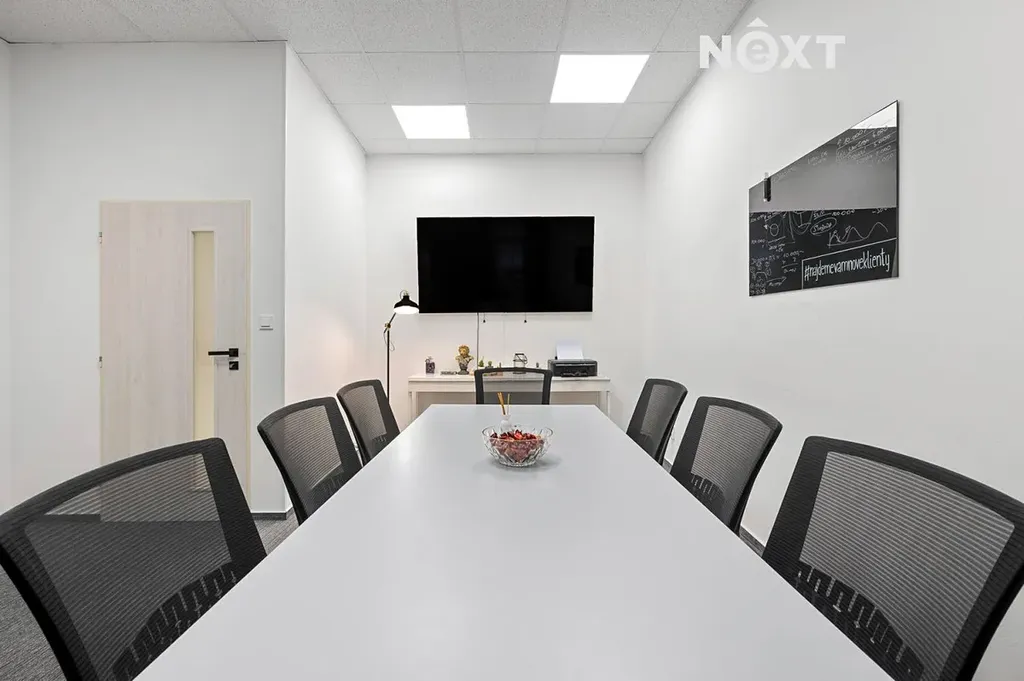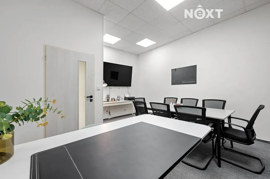 Dispozice je velmi praktická a promyšlená – vstupní prostor s možností zřízení recepce, prostorná kancelář, samostatná zasedací místnost, koupelna se sprchovým koutem, oddělené WC a sklad pro uložení veškerého potřebného vybavení. Součástí je také kuchyně s vybevou kuchyňskou linkou.