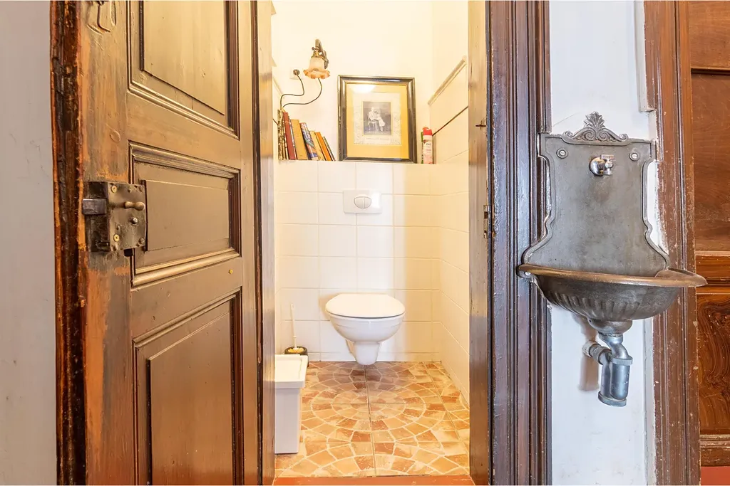 Vybavení bytu je patrné z fotografií, stejně jako dispozice bytu z přiloženého plánku. Toaleta pouze pro tento byt je naproti vstupním dveřím do bytu v hale společné se sousedním bytem.