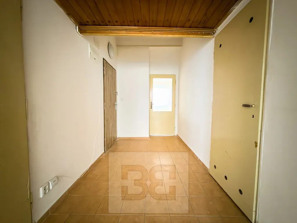 Byt disponuje třemi neprůchozími pokoji. Uprostřed bytu je prostorná chodba odkud se dále dostaneme do kuchyně, která je oddělená od pokojů.