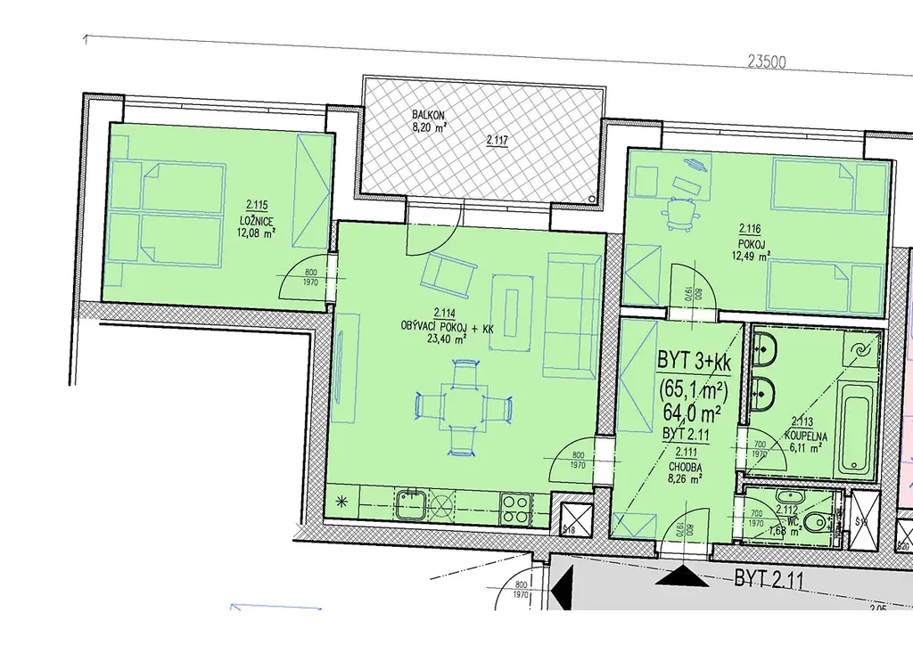 - byt 2.11. o velikosti 65,10 m2 bez sklepa + balkon 8,20 m2 za cenu 8.010.000,- Kč v 2.NP domu CD22