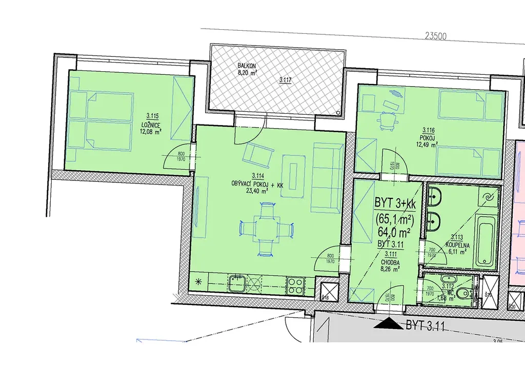 - byt 3.11. o velikosti 65,10 m2 bez sklepa + balkon 8,20 m2 za cenu 8.060.000,- Kč v 3.NP domu CD22