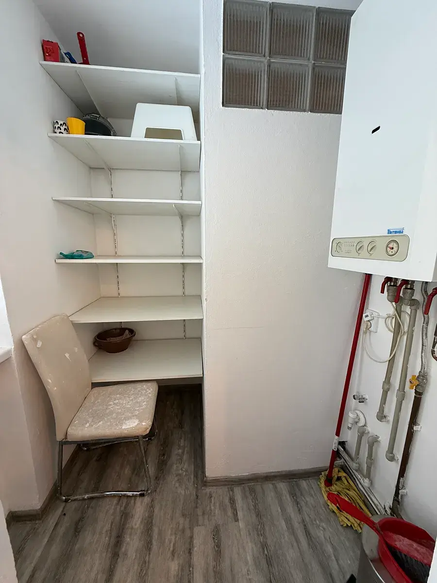 Byt o 52m2 podlahové plochy se nachází ve zvýšeném 1NP. Dispozice: kuchyně 8m2, pokoje 18 a 15m2, koupena s WC, předsíň. K bytu náleží 2x sklep. V bytě jsou nové měděné rozvody, vytápění je zde řešeno plynovým kotlem Thermona s rozvodem vlastního ústředního topení. K bytu náleží také menší zahrádka pro pěstování zeleniny.