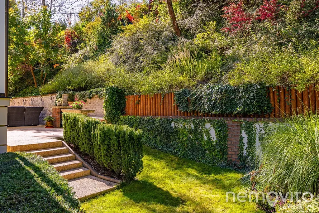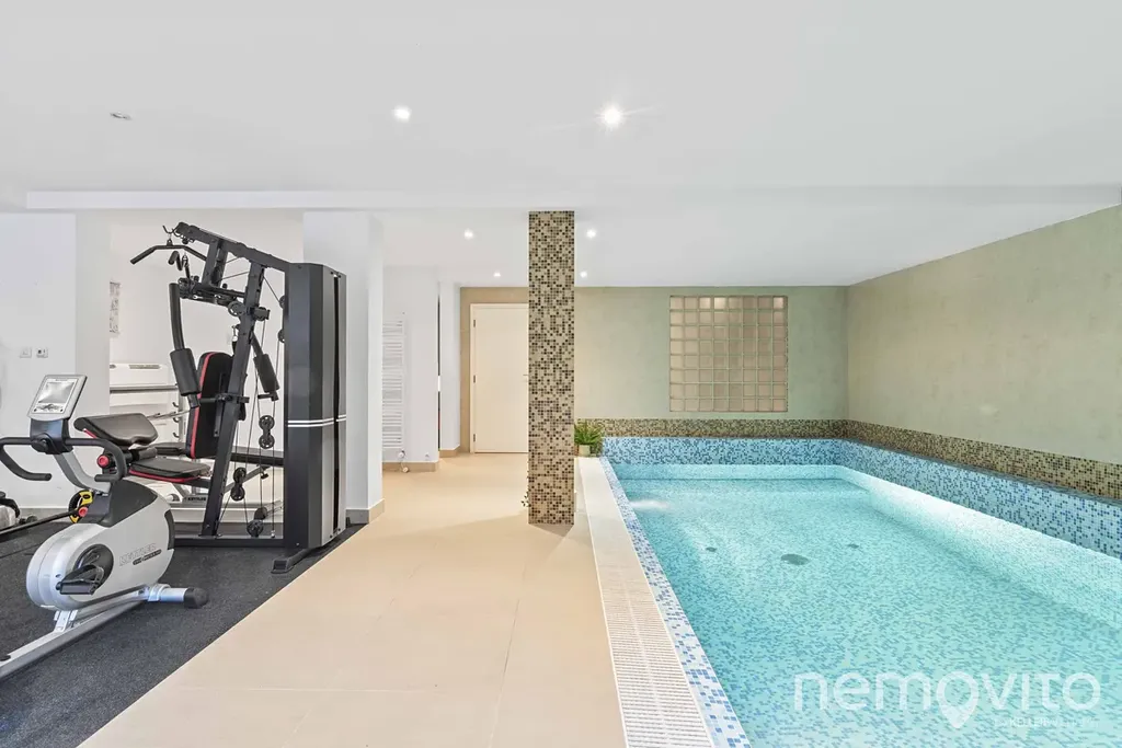 At the very bottom there is an indoor swimming pool (8 m) with a gym, steam bath and wellness. It is possible to exit directly to the southern terrace. Sarecke valley is a unique location, with the street lying to the side of the road and hidden from public view. An unprecedented feature is the accessibility of the center within a few minutes and a good connection to the airport. The house is also perfectly located for nearby international schools. I will be happy to send you a link to the listing website.