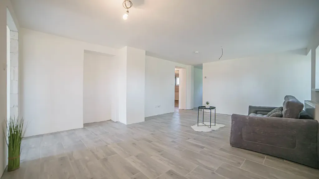 • V celém domě nové rozvody vody v plastu, nové rozvody plynu, plastová okna, nové rozvody elektřiny, štukové omítky, podhledy SDK, dlažba na podlaze.