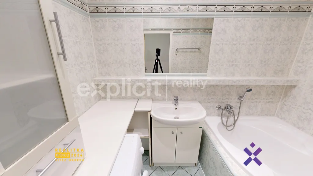 Hned u vchodu je umístěno WC, které je samostatné a není součástí koupelny. Koupelna s vanou se nachází vedle toalety, součástí koupelny je i pračka.