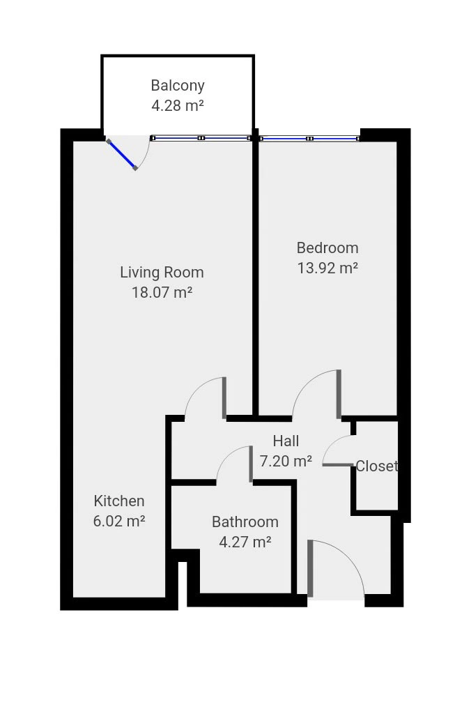 Byt je vybavený moderní kuchyňskou linkou s troubou se sklokeramickou deskou, lednicí a myčkou. V obývací části se nachází obývací stěna. Gauč nebude součástí. Dále je zde samostatný pokoj s manželskou postelí a prostornou skříní. V koupelně se nachází vana a WC.