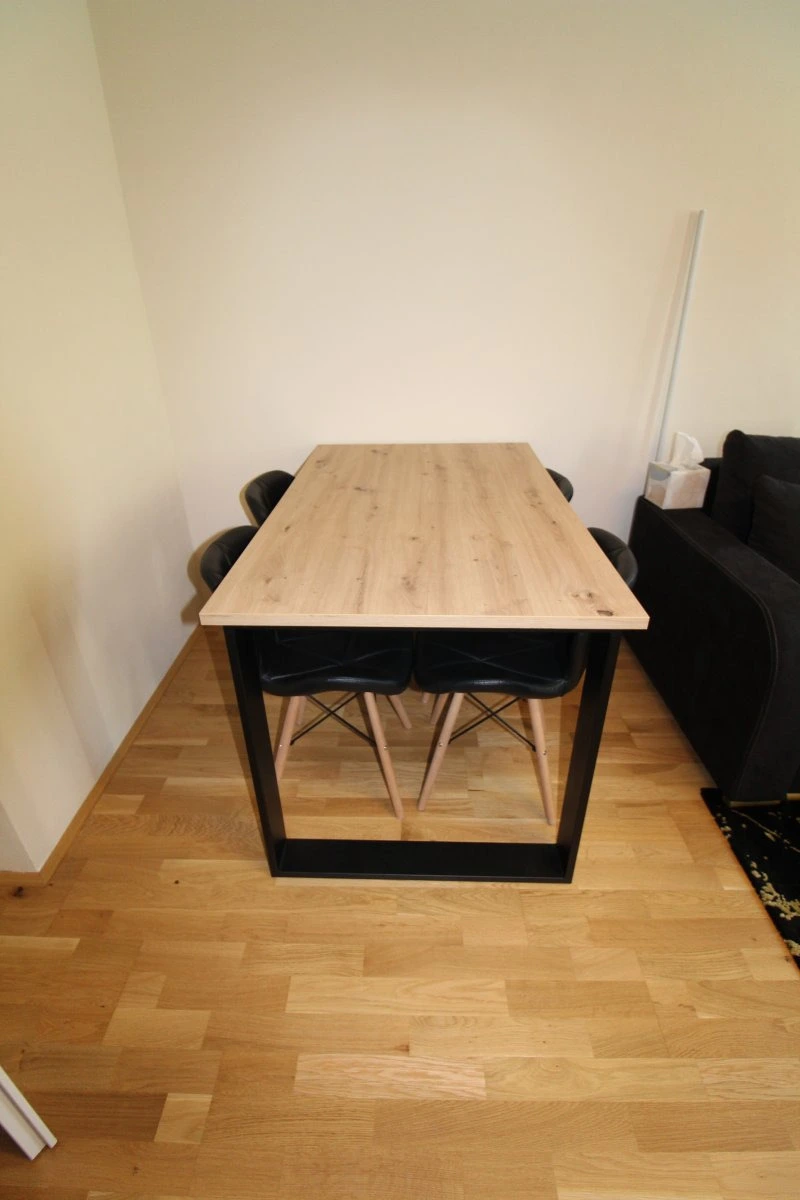 Byt se nabízí plně vybavený. Kuchyňský linka disponuje indukční deskou, lednicí, myčkou a mikrovlnou troubou. Spotřebiče jsou nové a moderní, kuchyni dodává šmrnc barová deska s židlemi. Součástí je také jídelní stůl a židle.