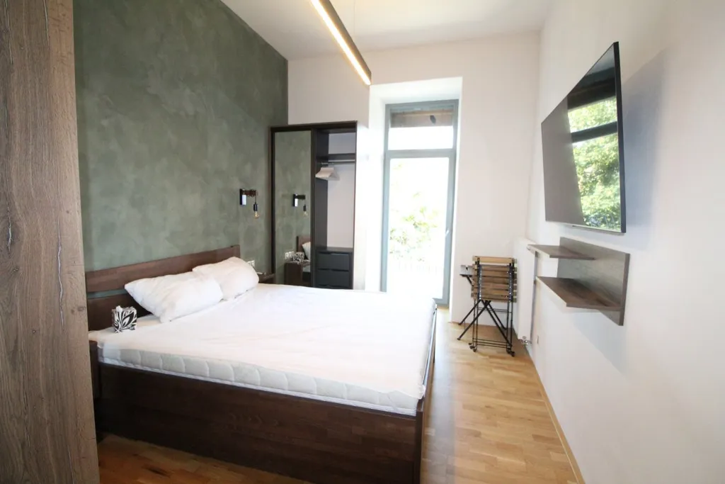 Ložnice je prostorná, útulná a krásně prosvětlená. Ložnice v rámci vybavenosti nabízí dvě skříně, noční stolky a dvoulůžkovou postel s matrací. Z ložnice je vstup na balkon. V koupelně je umyvadlo se zrcadlem, sprchový kout a toaleta.