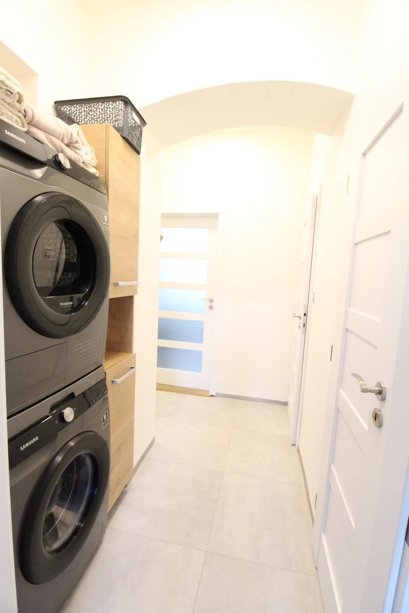 Další částí bytu je předsíň s pračkou, sušičkou a skříní.