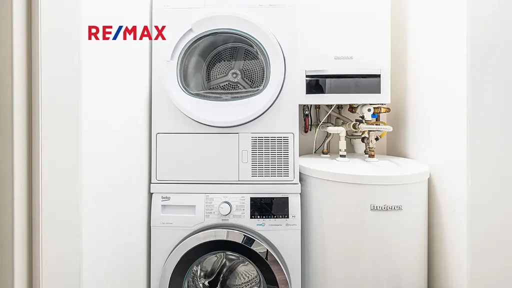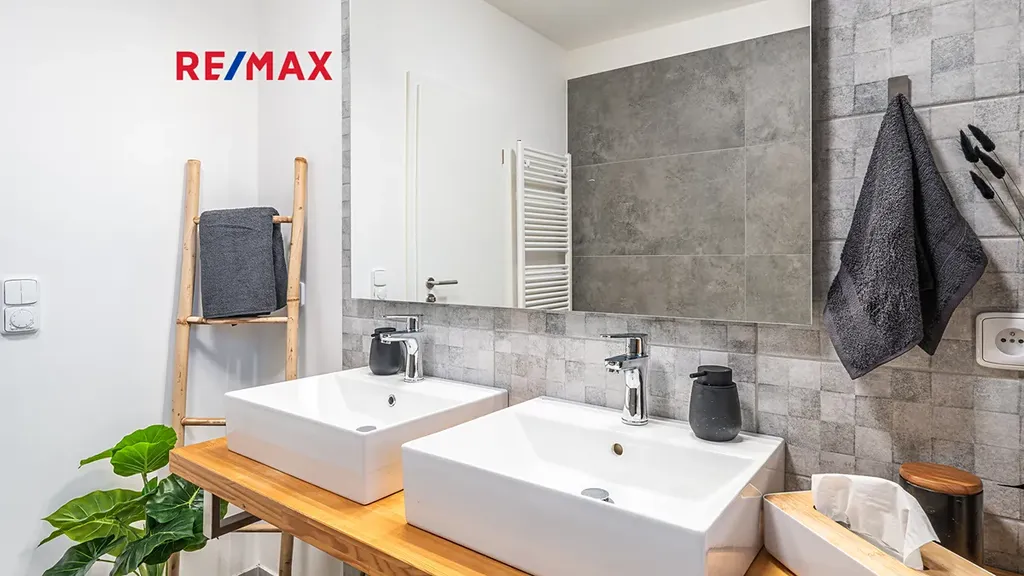 Byt je vybaven vlastním plynovým kotlem BUDERUS Logamax + zásobníkem TUV 120L Logalux, umístěnými v technické místnosti, obojí s možností komfortního automatického ovládání. V koupelně i na toaletě jsou použity velmi kvalitní obklady a dlažby - Quenos grey + Quenos white, stejně jako zařizovací předměty - vana obdélníková Vagnerplast LINOS 170×75 cm + VILMA skleněná vanová zástěna 600x1400mm, 2x umyvadlo SISTEMA 50×42cm, AVICE deska 150x50cm old wood. Koupelna i toaleta mají vedle radiátorů možnost el. podlahového vytápění. V obývacím prostoru je v podlaze umístěn elektrický radiátor pro ohřev vzduchu před francouzskými dveřmi na terasu.