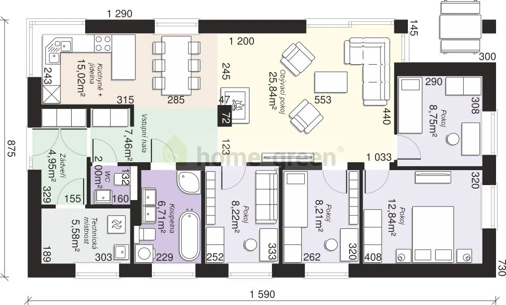 RD spojuje praktické řešení, moderní design a úsporný provoz, takže poskytuje maximální pohodlí pro celou rodinu. Nabídková cena je včetně pozemku, vodovodní a kanalizační přípojky, katalogové ceny RD na klíč se základovou deskou, tepelným čerpadlem, podlahovým topením a fotovoltaickou elektrárnou s ohřevem vody. Pozemek se nachází na kraji obce ve velmi klidné části. Stavební šířka pozemku je cca 15,5 m a délka cca 51,6 m. Vjezd na pozemek vede z obecní cesty.