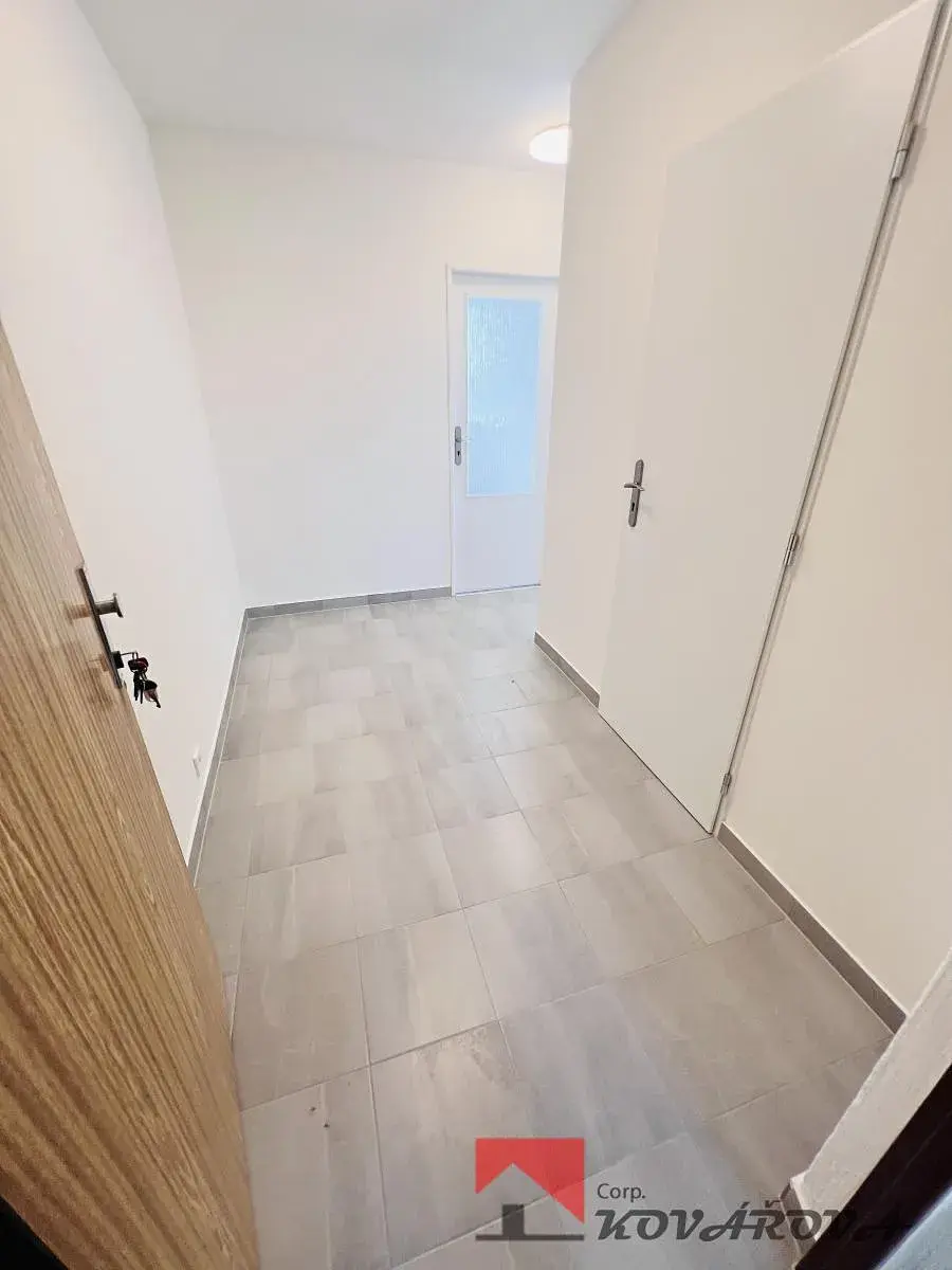 Nabízíme k pronájmu světlý a velmi příjemný byt 2+kk o výměře 42 m2, který se nachází v 1. patře kompletně revitalizovaného panelového domu s výtahem v Roudnice nad Labem. Byt prošel kompletní rekonstrukcí a je připraven k nastěhování. Dispozici tvoří moderní kuchyňská linka propojená s obývacím pokojem, ložnice, koupelna se sprchovým koutem a WC. K bytu náleží komora umístěná na chodbě a sklepní kóje, které zajišťují dostatek úložného prostoru. Dům je velmi dobře udržovaný, po celkové revitalizaci nové zateplení, fasáda i vstupní portál atd.