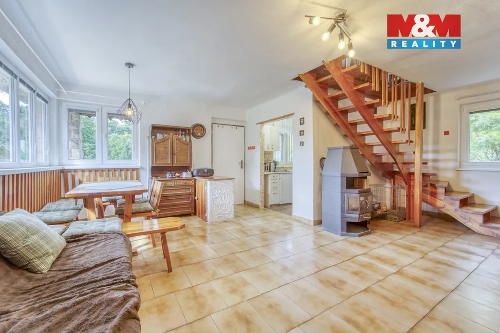 Nabízíme k prodeji prostornou a prosluněnou chatu o užitné ploše 74 m2 s pozemkem o výměře 975 m2 ve vyhledávané lokalitě Stříbra u řeky Mže. K chatě naleží terasa o výměře 16 m2, která je ideální pro odpočinek a je zde velmi příjemně a garáž o výměře 14 m2. Na zahradě se nachází zapuštěný bazén s venkovní sprchou, je zde také venkovní posezení s krbem pro grilování a je zde spousta ovocných stromů. U chaty je také prostorná veranda, která slouží jako skvělé místo pro venkovní posezení při horším počasí. Chata je ve velmi dobrém stavu, připravená k okamžitému užívání, plně vybavená a veškeré zařízení zde může zůstat. O vytápění se zde starají krbová kamna, která krásně vytopí celou chatu a o ohřev vody se stará elektrický průtokový ohřívač ale je zde možné připojit si i bojler. Chata je částečně podsklepená. Nemovitost je ideální pro rekreaci ale je zde možné i trvale bydlet, jelikož je zde veškeré zařízení a potřebné inženýrské sítě. Pro více informací kontaktujte makléře.