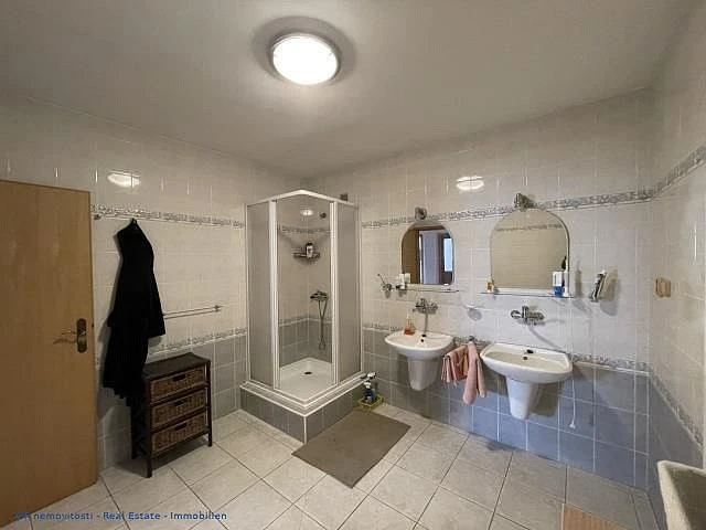 Solární panely včetně úložiště elektřiny. Zateplený dům, Úsporný provoz, Vhodný jak pro bydlení i pro podnikání. Solární panely včetně úložiště elektřiny. Praktický krb, dodá hodnotné teplo, a ekonomicky ušetří náklad na dům. V dalším patře jsou krbová kamna; Jinak centrálně si dům vyhřejete, pomocí plynového kotle. Také je zde sauna, pro regenaraci těla. Místnosti mají na podlaze lakované dřevo, což je výborná, tepelná izolace. Kanalizace, Voda, napojeno na obecní. Plus Vlastní studna na pozemku; 3. podlažní ( 2. patra), 3x koupelna; 3x WC, V 1. patře, jedna místnost má přípravu pro instalaci připojení druhé kuchyňské linky se spotřebiči. Garáž pro dvě auta. Jen 16 min. autem od města Mělník.