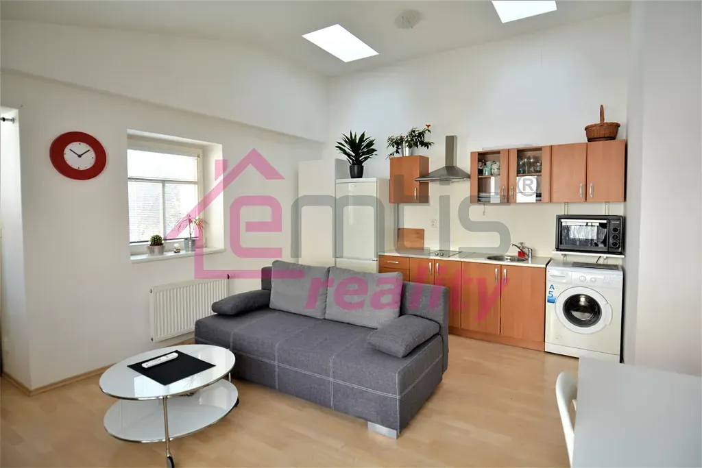 K dlouhodobému pronájmu nabízíme tento byt, situovaný v 2.patře menšího cihlového domu bez výtahu v ul. Za Strahovem. Byt je o dispozici 2+kk a rozloze 42 m2 + terasa12 m2. Z předsíně se vstupuje po pravé straně do koupelny a WC. Proti vstupním dveřím je pak obývací pokoj s kuchyňským koutem, po levé straně chodby pak ložnice. Obě obytné místnosti mají výstup na terasu. Kuchyňská linka včetně lednice s mrazákem, elektrická varná deska, digestoř, pračka.