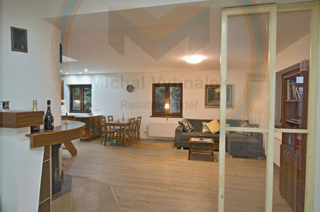 Vytápění domu je etážové, zajištěné elektrickým kotlem, v obytném prostoru je navíc funkční krb.