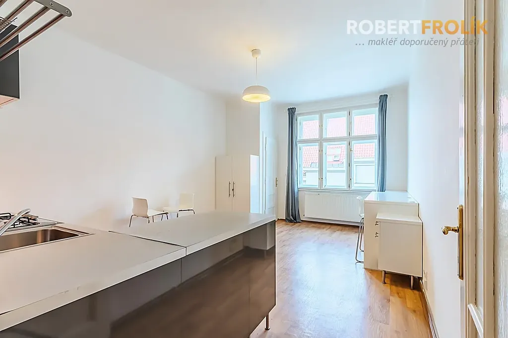 Ve 4. patře klasického bubenečského činžáku (s výtahem) si můžete pronajmout částečně zařízený byt 1+1 o výměře cca 55 m2. Při troše skromnosti se dá používat i jako 2+kk.