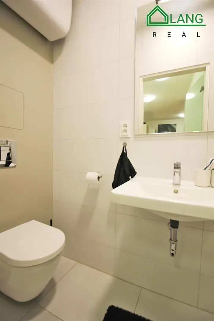 Koupelna je vybavená sprchovým koutem, umyvadlem, zrcadlem a toaletou.