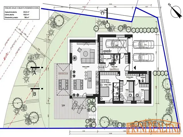 - šířka pozemku je 22 metrů