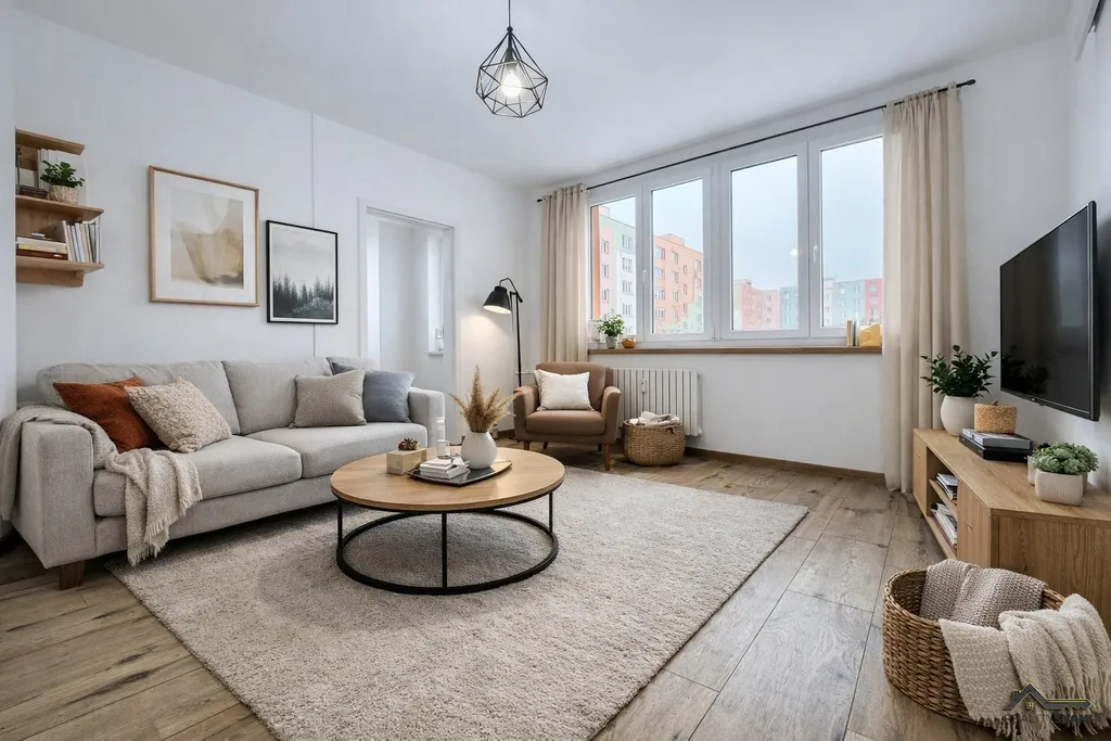 Součástí fotek je i vizualizace pro lepší představu, jak se byt dá vybavit.