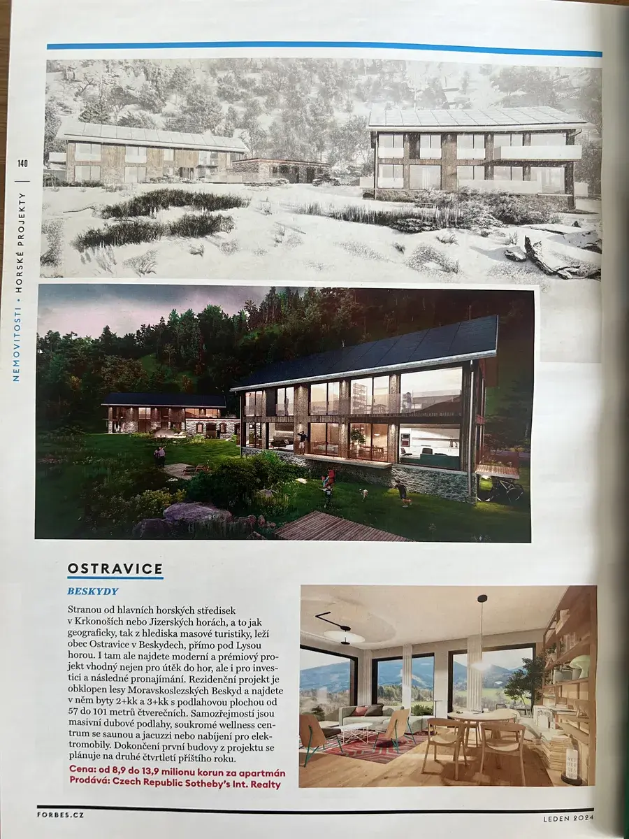 Součástí projektu je také wellness s venkovním swim spa, ze kterého můžete pozorovat zasněžené panorama Beskyd. Nebude chybět také sauna s odpočívárnou v kamenném, sto let starém, domě.