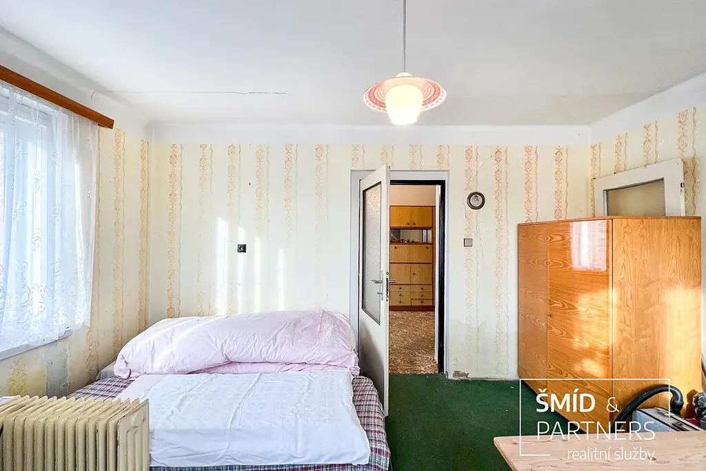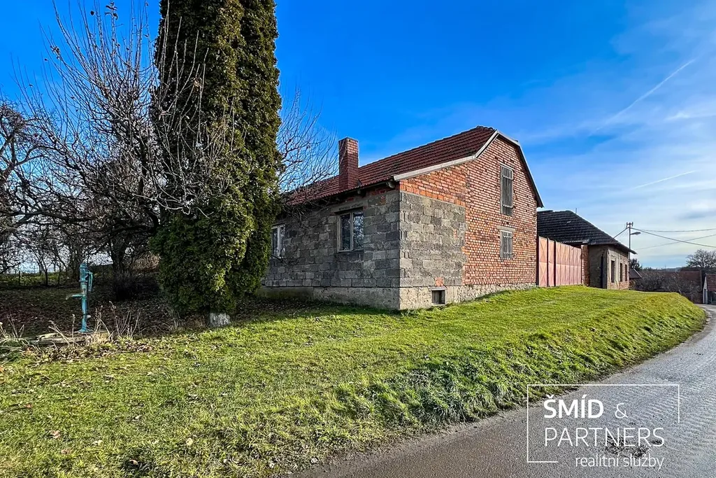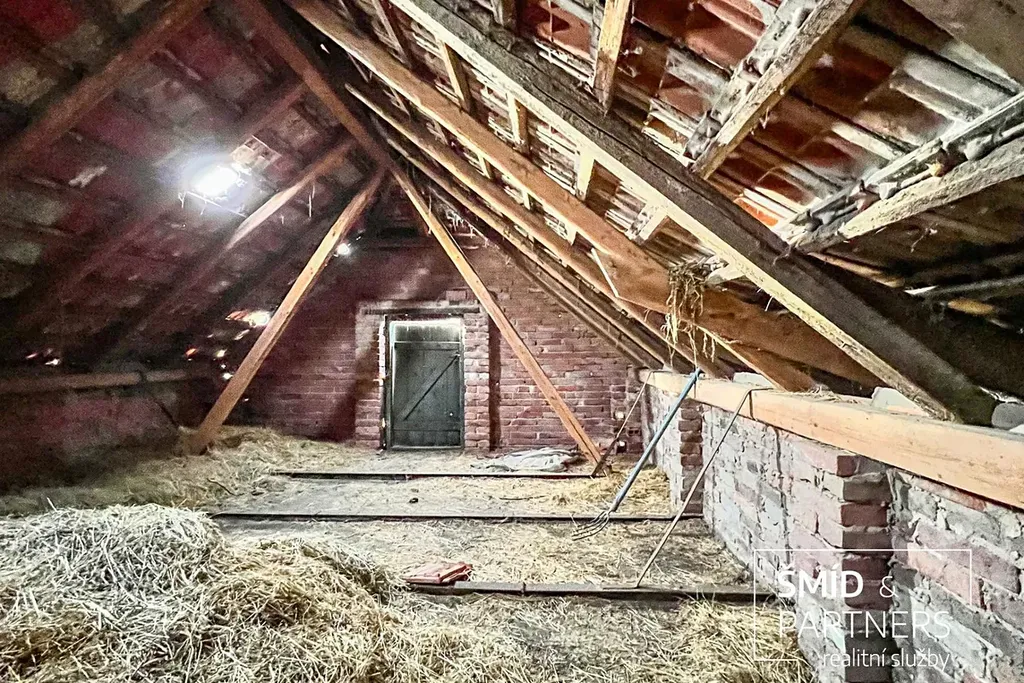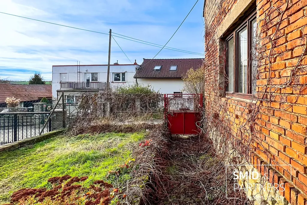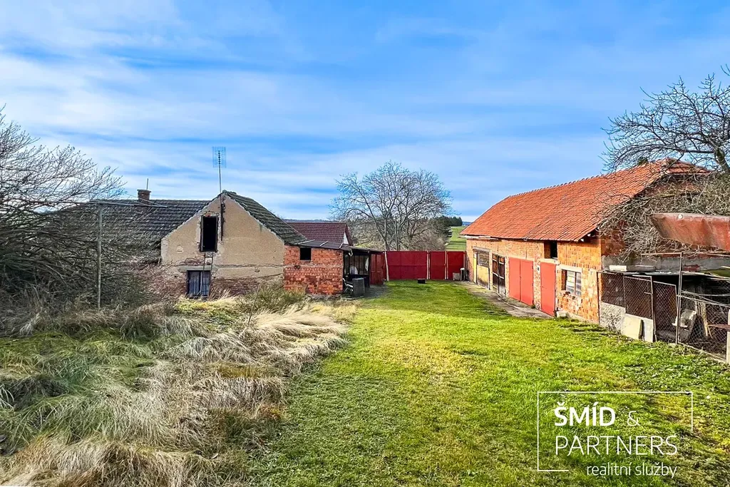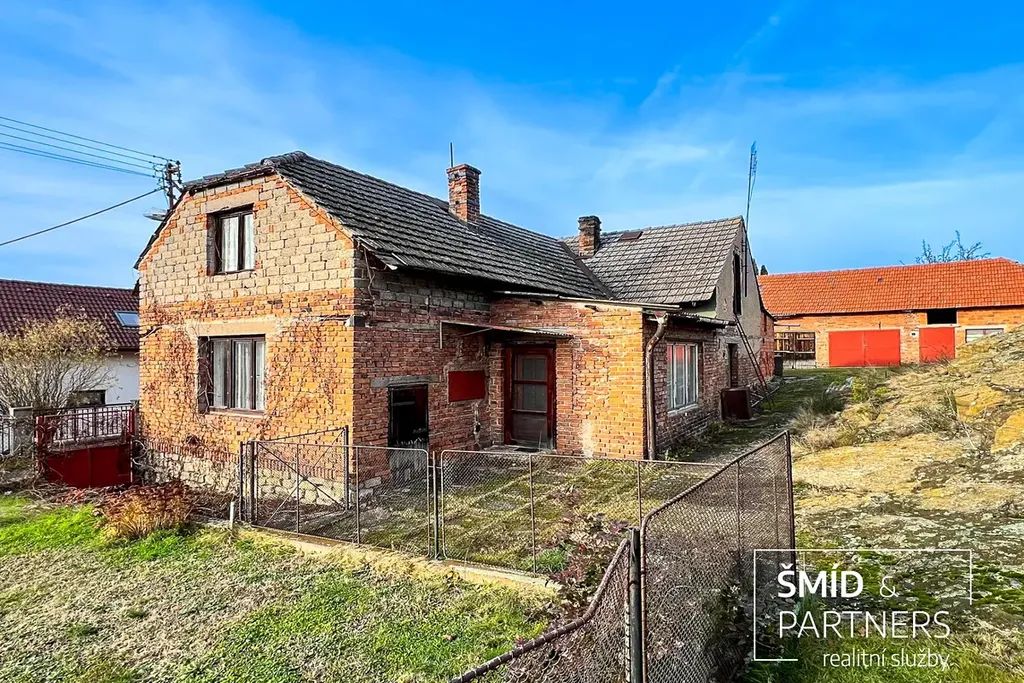 Rád bych Vám představil bývalou zemědělskou usedlost se zděným cihlovým rodinným domem (3+1) o podlahové ploše 99,3 m2 před kompletní rekonstrukcí a stodolou o podlahové ploše 91,3 m2, přičemž celková rozloha pozemku činí 1 031 m2. Dům se stodolou jsou částečně podsklepeny. Dům je připojen k obecní kanalizaci a obecnímu vodovodu, zároveň se na pozemku nachází kopaná studna o hloubce 11 m, samotný dům býval vytápěn pomocí krbových kamen. Dominantou místa je skála sousedící přímo s domem, na jejímž vrcholku se nachází socha sv. Barbory.