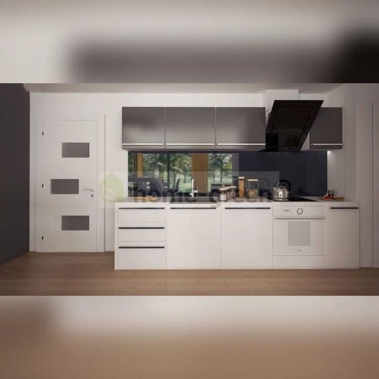 Doporučujeme na tomto pozemku postavit moderní přízemní dům Z378 s garáží pro dvě auta. Interiér domu je rozdělen na obývací a spací část. Prostorný obývací pokoj, který je propojen s elegantní jídelnou, je vybaven krbem, který zajišťuje, že váš domov bude vždy naplněn teplem domova. Kuchyňský kout je vybaven velkým množstvím pracovních desek (kuchyňský ostrůvek), které ocení každý majitel domu. Rozlehlá terasa obklopující celý obytný prostor je vybavena velkými okny pro maximalizaci vnitřního světla. Blízkost koupelny umožňuje hostům zůstat v obývacím prostoru. Ložnice se skládá ze čtyř pokojů, z nichž poslední má samostatnou koupelnu a šatnu, takže ji lze využít jako pokoj pro hosty nebo jako hlavní ložnici. Dva prostřední pokoje mají společnou koupelnu na chodbě, zatímco pokoj s výhledem do ulice má vlastní koupelnu. Návrh domu Z378 vznikl jako reakce na potřeby rodin se třemi dětmi.