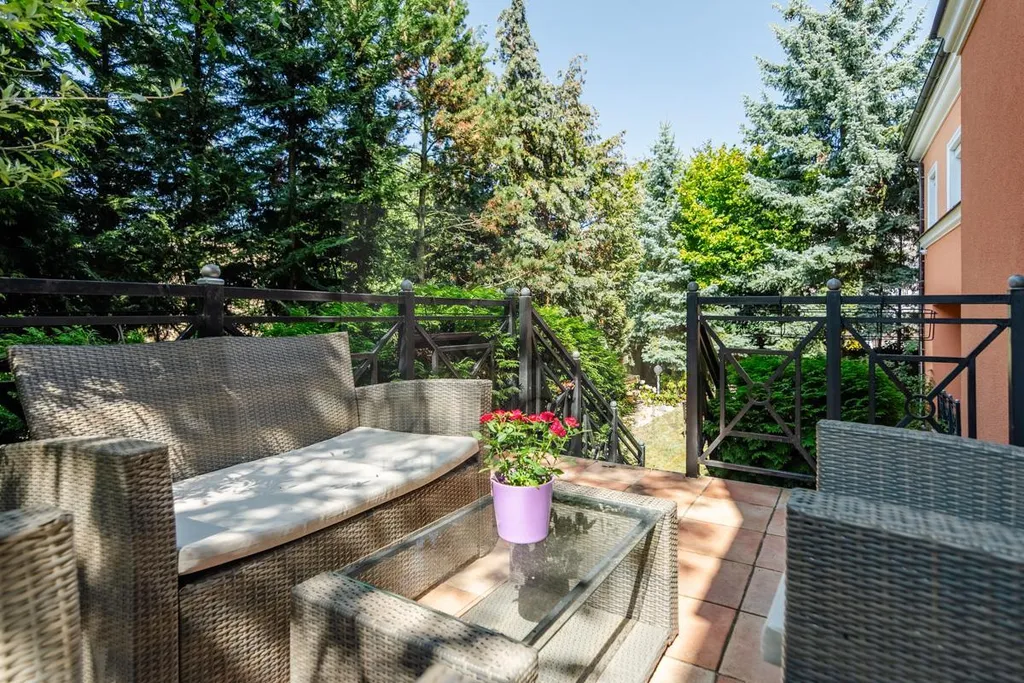 Když budeme pokračovat dále v prohlídce, dostáváme se na menší snídaňovou terasu a z ní můžeme sejít po schodech do krásné vzrostlé zahrady a na druhou terasu. Při firemním i rodinném využití, skýtají terasy a zahrada možnost pracovat i žít venku, v uklidňujícím prostředí.