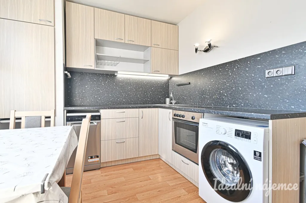Kuchyně je vybavena prostornou a praktickou kuchyňskou linkou a jídelním stolem se židlemi. Kuchyňská linka disponuje spotřebiči jako lednice, varná deska, trouba, myčka a pračka.