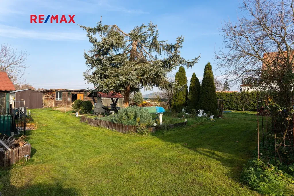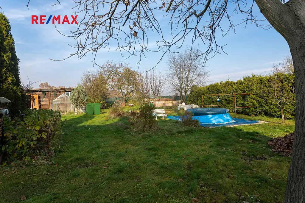 K domu náleží udržovaná zahrada se vzrostlými stromy a záhony a s venkovním posezením a bazénem. Na pozemku se nachází garáž, kůlna a dílna, dům je částečně podsklepen. Parkování na pozemku.