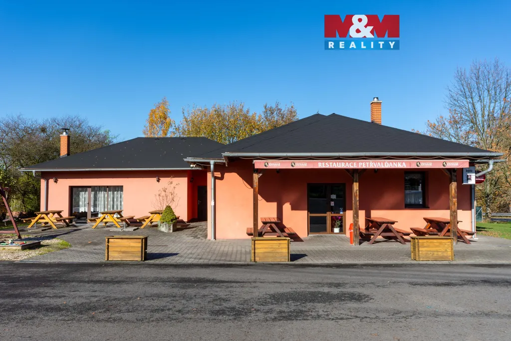Nabízíme k prodeji komerční objekt v Petřvaldě u Karviné o celkové užitné ploše 168 m², který dosud sloužil jako restaurace, ale díky své dispozici nabízí i široké možnosti přeměny na obchodní či kancelářské prostory. Dominantou je restaurace (64 m²) a sál (54,4 m²), které lze využívat odděleně – oba mají samostatné vstupy. Objekt disponuje dvěma sociálními zázemími (celkem 5 toalet, včetně bezbariérové), kuchyní s přístupem do obou částí a technickým zázemím. Interiér je dlážděný, okna plastová s dvojskly, vytápění zajišťuje plynový kotel, dva krby a podlahové topení v kuchyni a za barem. Nechybí klimatizace. Budova byla zkolaudována v roce 2009, přístavba sálu dokončena v roce 2011. Střecha je z pozinkované oceli s asfaltovým šindelem. Pozemek o 1468 m² zahrnuje prostorné parkoviště (vhodné i pro kamiony), terasu a dětské hřiště. Ideální místo pro podnikání v gastronomii, službách či obchodu.