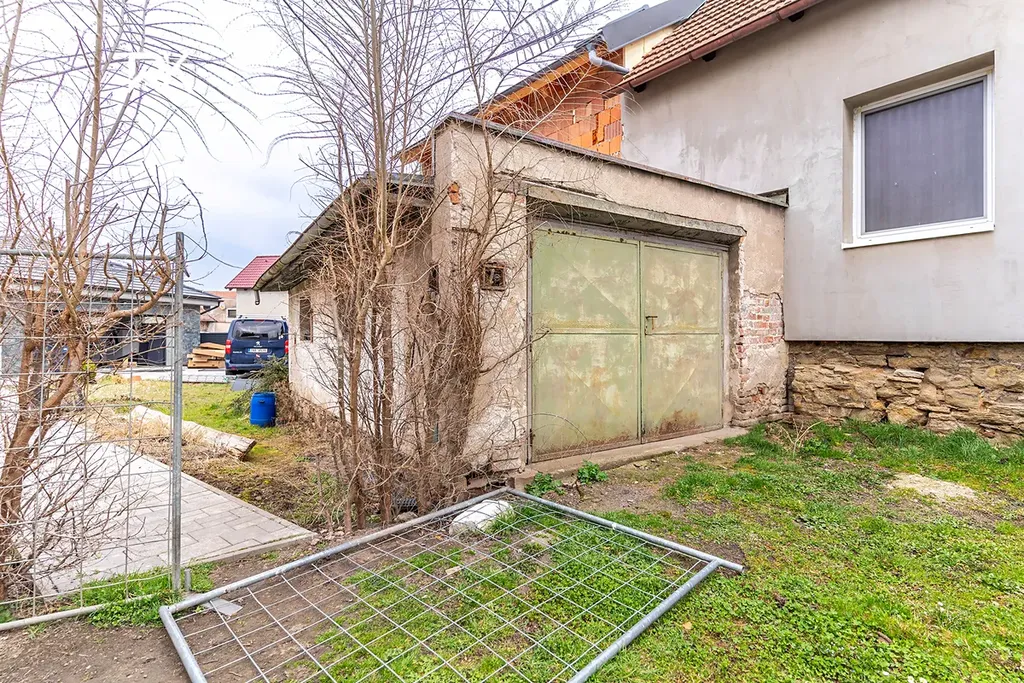K domu patří i garáž, kde můžete zaparkovat své auto nebo využít jako dílnu .
