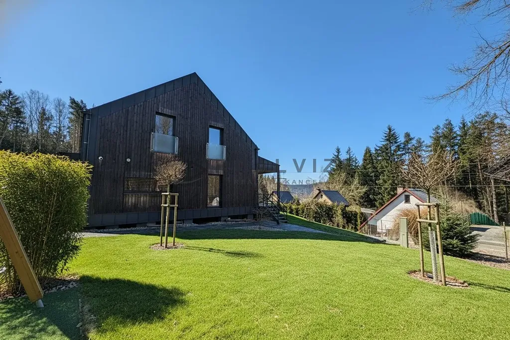 Technologie: Vytápění elektrickým podlahovým topením s možností dálkového řízení, fotovoltaika s akumulací, klimatizace, nabíječka na elektroauto, elektronický zabezpečovací systém, venkovní žaluzie.