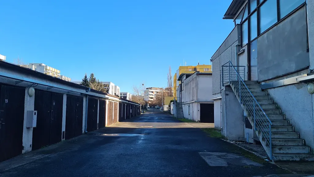 Garáž je umístěna v uzamčeném a oploceném areálu Hromadných garáží Zelený Pruh, do kterého je vjezd na dálkové ovládání a je pod 24 hod. dohledem kamer.
