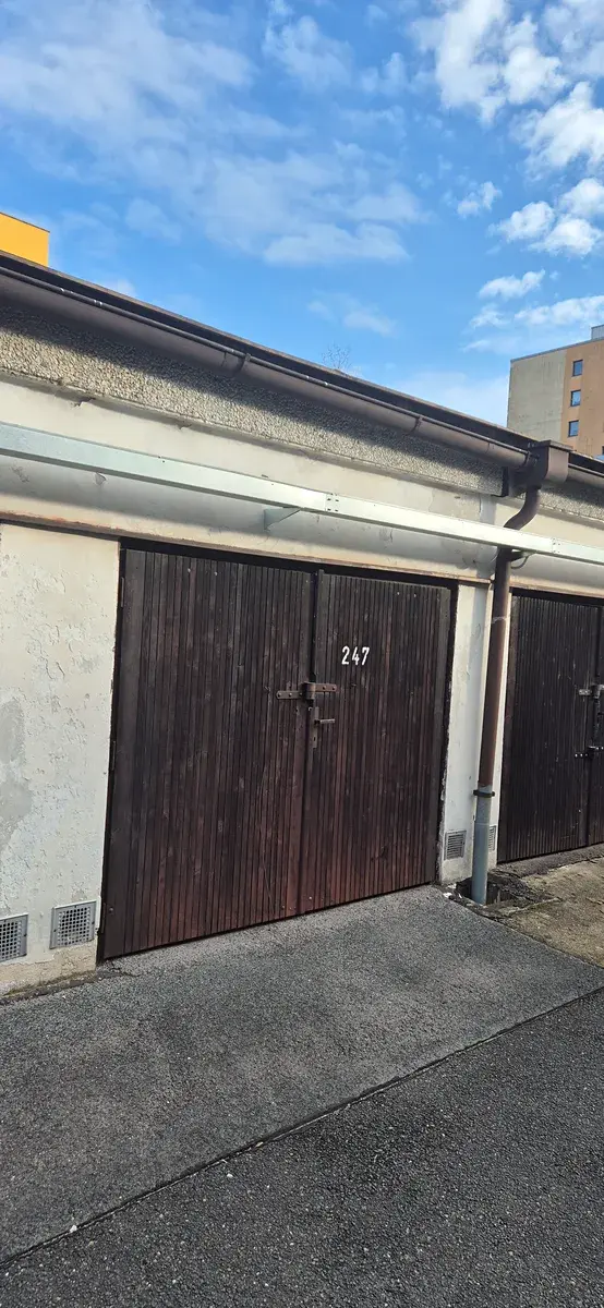 Rozměr garáže je: délka 647cm x šířka 286cm x výška 247cm, průjezdná výška vjezdových vrat je 186 cm.
