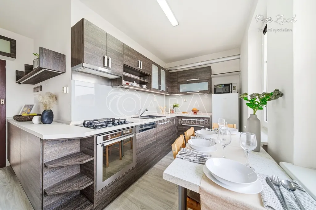 Dispozice 3+1 nabízí dostatek prostoru jak pro rodinu, tak pro pohodlné bydlení ve dvou. Kuchyně je vybavena prostornou kuchyňskou linkou se spotřebiči a nabízí místo pro společné vaření i každodenní posezení. Obývací pokoj i ložnice působí vzdušně, klidně a příjemně. Příjemným benefitem bytu je prosklená lodžie, kde si můžete vychutnat ranní kávu nebo večerní odpočinek.