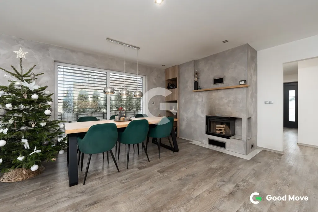 Dispozice domu je 4+kk o velikosti 111 m2 vč. technické místnosti a šatny v ložnici. Veškeré vybavení, které se v domě nachází je součástí prodeje.