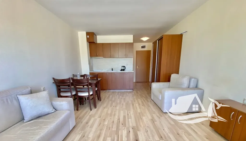 Studio má severní orientaci, díky které zůstává příjemně chladné i během horkých letních dnů. Prodává se kompletně zařízené včetně nábytku a spotřebičů, připravené k okamžitému užívání nebo pronájmu.