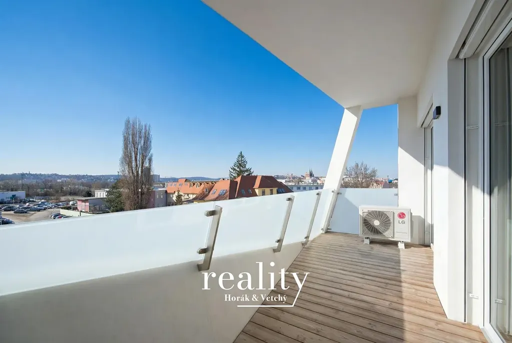 Součástí jsou dvě terasy (11,2 m² a 2,7 m²) s příjemným výhledem na Petrov.