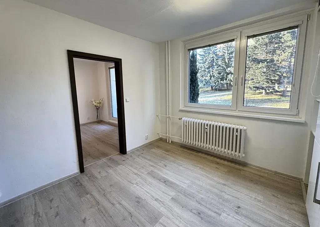 Za vstupními bezpečnostními dveřmi do bytu se nachází chodba o výměře cca 3,19 m2. Z chodby je vstup do moc pěkné kuchyně, kde se nachází velmi prostorná kuchyňská linka na míru s vestavnými spotřebiči jako je pečící trouba, lednice s mrazákem a sklo-keramická deska. Z kuchyně o výměře cca 13,16m2 je krásný výhled do okolní přírody, kam jsou obě obytné místnosti v bytě orientovány. Z kuchyně vejdeme do pokoje, který může sloužit jako ložnice, ale i jako kombinace obývacího pokoje s ložnicí. Celková výměra ložnice činí cca 7,64m2. Dominantou této místnosti je balkón o výměře cca 4,27m2, ze kterého je nádherný výhled do přírody a přímo vybízí k odpočinku a relaxaci. Koupelna o výměře cca 4,82m2 je prostorná a nedávno nově vybudovaná. Její součástí je prostorný sprchový kout, umyvadlo a WC.