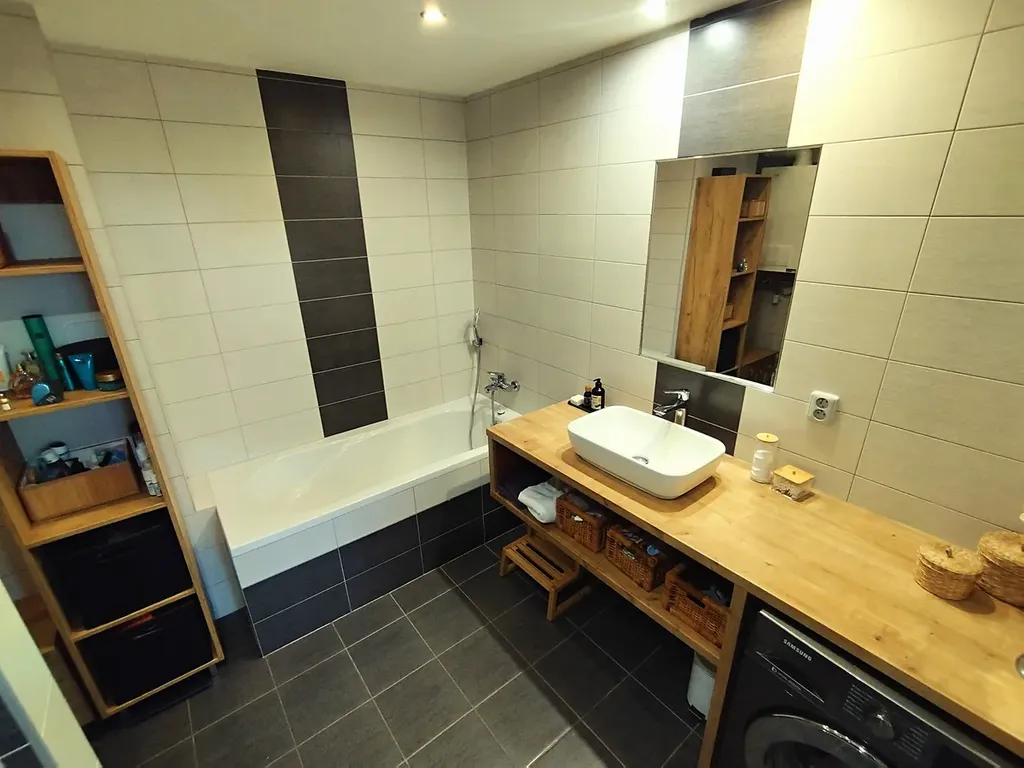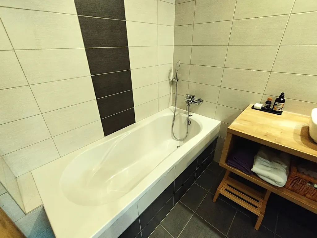 K dispozici je balkon o ploše 5 m², který zajišťuje příjemné posezení s výhledem do vnitrobloku. Dále je k bytu přidělen sklep o velikosti 2m2 a další komora v prostorách domu. Byt se nabízí částečně vybavený nábytkem na míru a díky klimatizaci je zde zajištěn komfort v letních měsících.