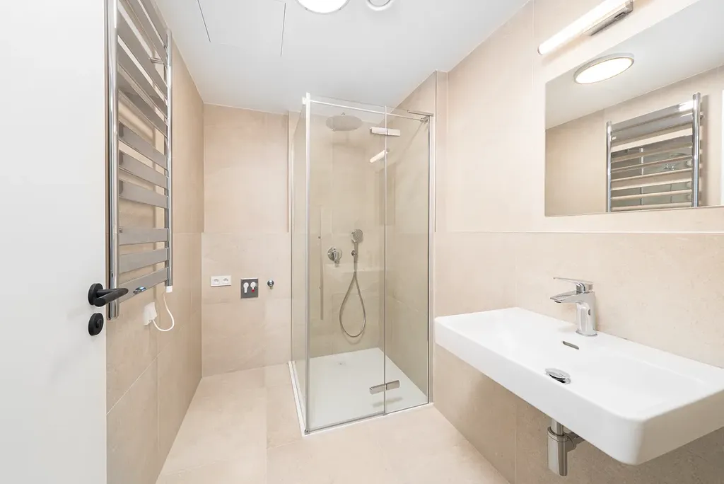 Je vybaven podlahovým vytápěním, centrální rekuperací, klimatizací Samsung a inteligentním systémem LOXONE, který umožňuje ovládání osvětlení, vytápění, žaluzií či ventilace pomocí tabletu v bytě nebo přes aplikaci v telefonu. Součástí vybavení jsou elektricky ovládané venkovní žaluzie.