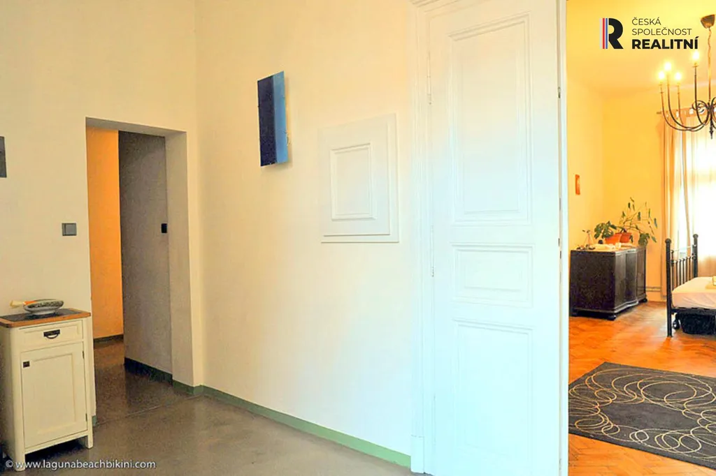 Byt disponuje velkou vstupní halou, plně vybavenou kuchyní a zrekonstruovanou mramorovou koupelnou. Interiér má původní historický styl a atmosféru staré Prahy.