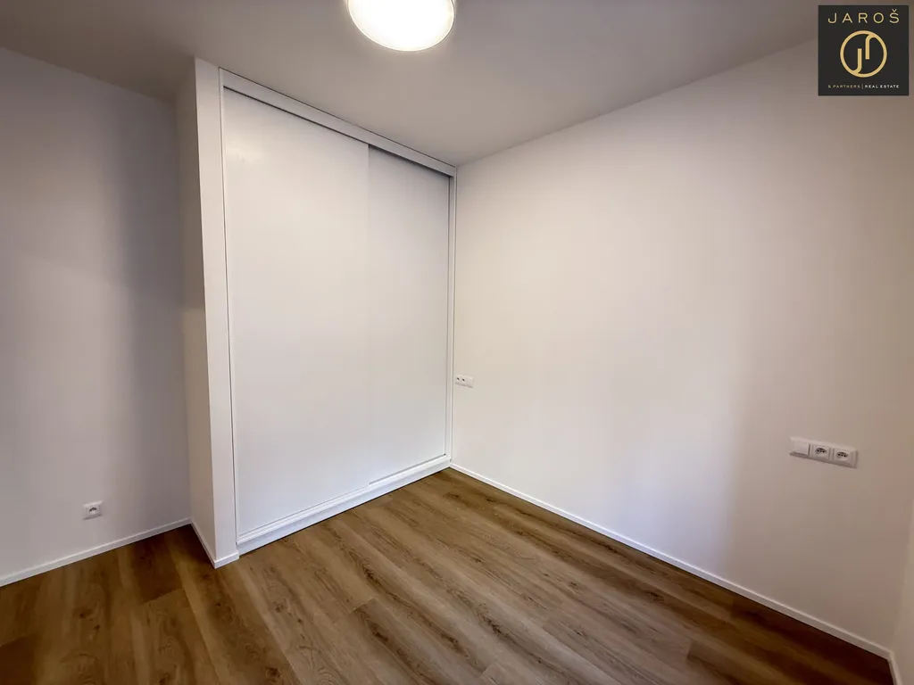 V bytě najdete novou, zcela zařízenou kuchyňkou linkou spotřebiči zn. Whirlpool, vestavné skříně v ložnici a na chodbě a policovým systémem v technické místnosti.