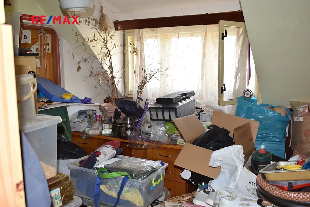 Horní místnosti , dvůr a zahrada jsou plné nahromadění věcí po původním majiteli a po vyklizení lze přistoupit k rekonstrukci ...