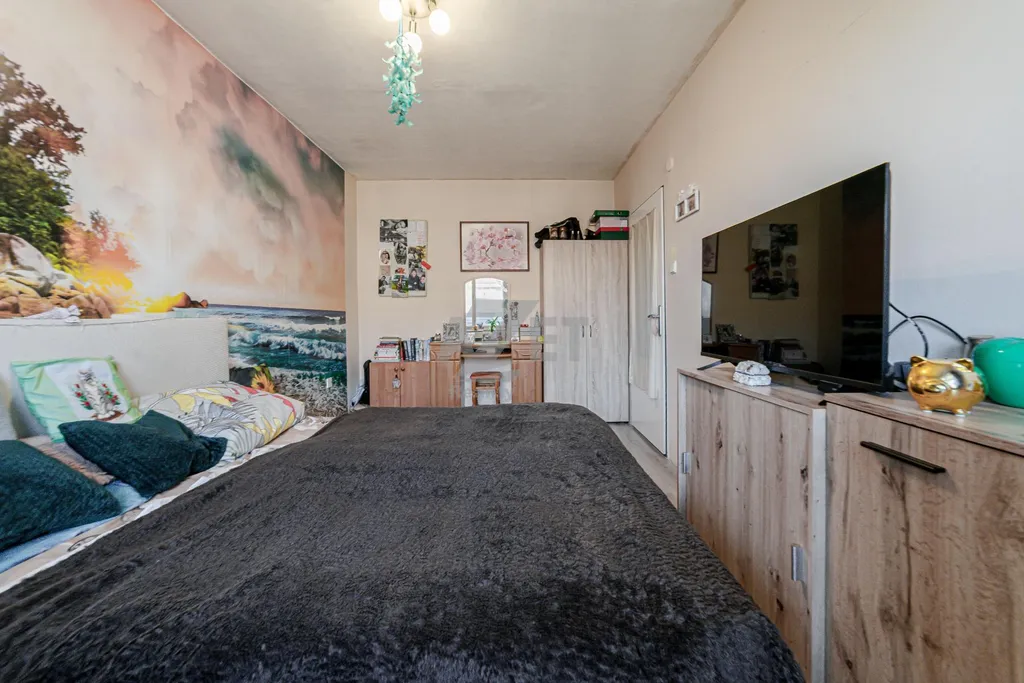 Umístění bytu je v 11. patře (12. NP) třináctipatrového domu. Jednotlivé místnosti jsou neprůchozí, vyjma obývacího pokoje jenž je propojen s kuchyní. Z obývacího pokoje je také vstup na lodžii, která naskytuje mnoho využití díky své velikosti a zasklení. Pohodlně zde umístíte např. posezení, sušení prádla či pěstování květin, bylin nebo čehokoli co Vám bude dělat radost a to vše najednou. Ložnice menší přesto velmi útulná a dostatečné velká pro manželkou postel. Pokoj svou velikostí vhodný i pro více než jedno dítě s vlastním vstupem na lodžii. Koupelna je sice menší i tak se povedla umístit vana a pračka. WC je samostatné. Byt lze samozřejmě upravit dle vlastních představ a vyladit si jej k vlastní dokonalosti neboť veškeré dělící zdi v bytě jsou nenosné příčky.
